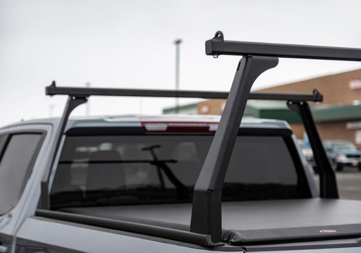- The ADARAC truck rack features 1 1/2-inch multi-functional cross bars that attach easily to built-in mounting channels on the top and bottom. These channels have anti-vibration and anti-slip rubber to securely stabilize any gear you may need to transport.