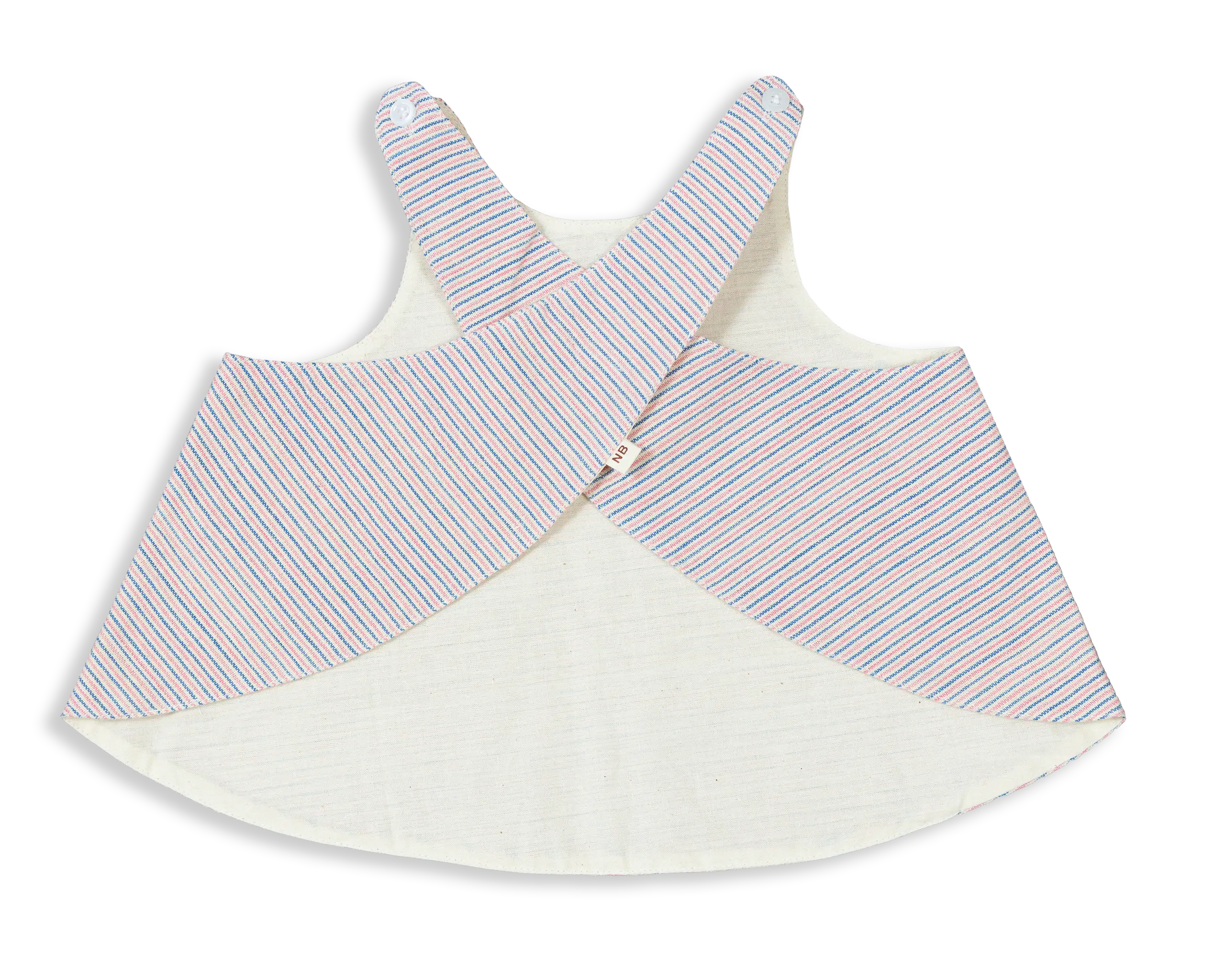 Comfortable and stylish double layer 100% Cotton Apron. Made of stripe pattern outer layer and plain raw cotton inner layer for easy washing.