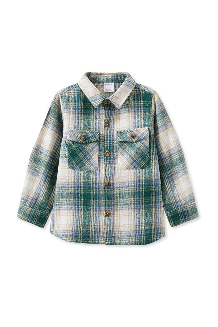 Looking for the perfect extra layer for your little one? The Milky Clothing Green Check Overshirt is the ideal grab-and-go option! Effortlessly versatile, this overshirt can be easily thrown over a t-shirt, providing warmth without the bulk of a jacket.